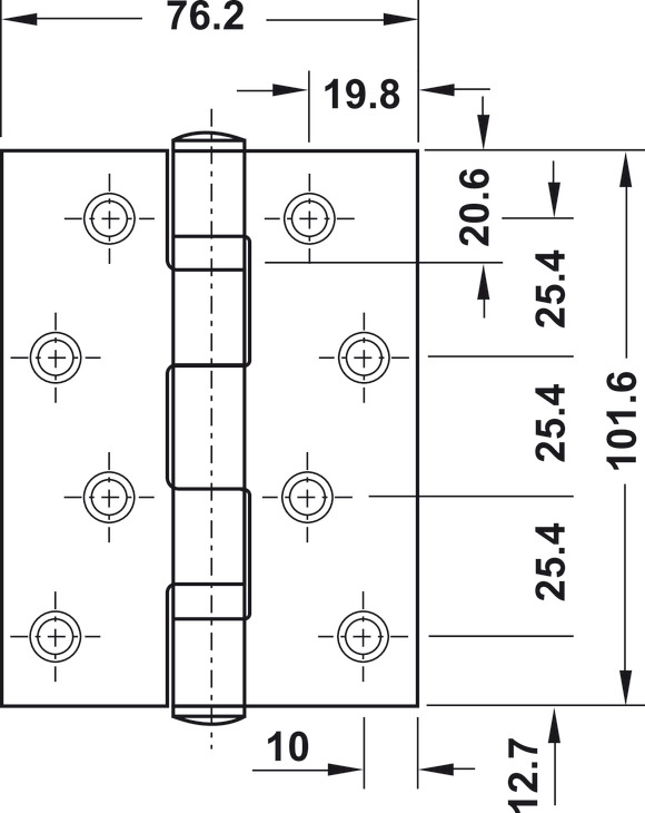 + Kích thước bản lề: 102x76x2.5 mm (4”x3”x2.5mm )