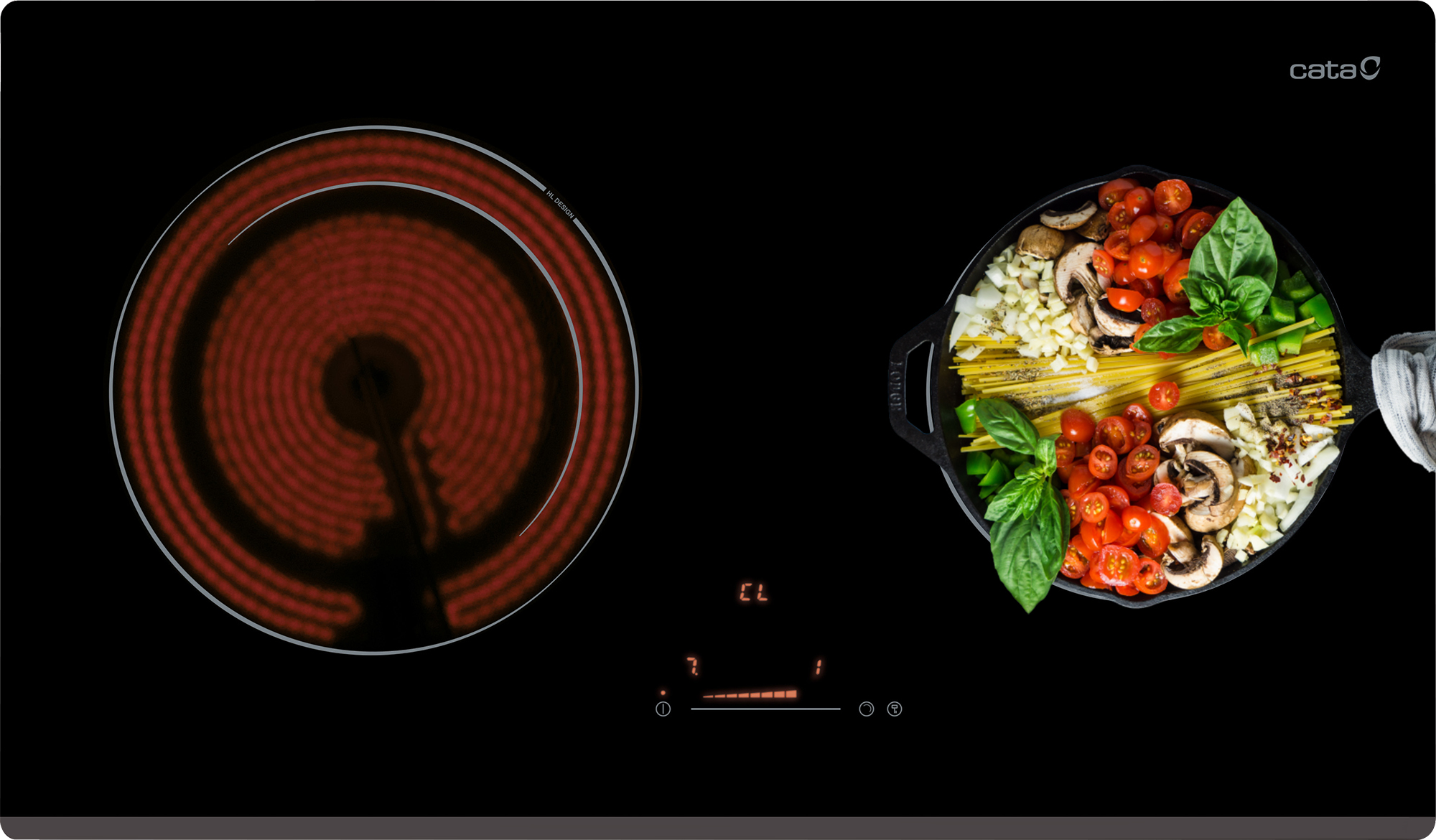 Bếp điện từ Cata IT 7002 BK trang bị mâm nhiệt E.G.O HI-LIGHT 02 vòng nhiệt tiết kiệm điện năng, tiện dụng và phù hợp với nhiều loại vật dụng nấu với đường kính khác nhau.
