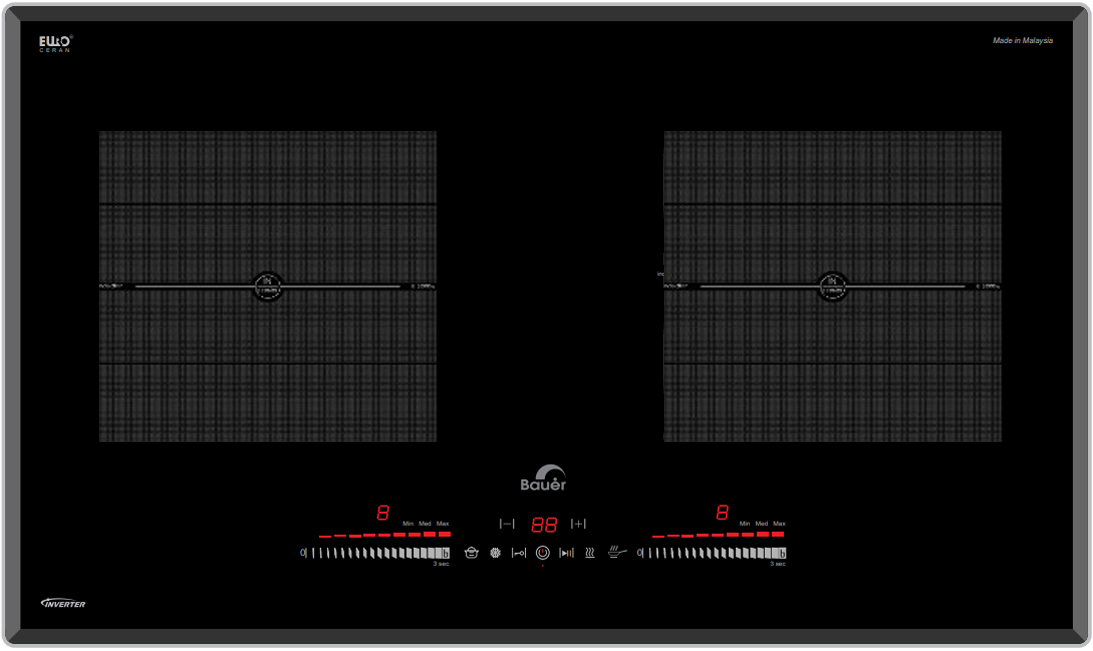 Bếp từ Bauer BE-668GTA thiết kế bảng điều khiển dạng Slider Control độc lập cho từng vùng nấu cùng các tiện ích được cài đặt sẵn. Siêu nhạy, dễ dàng sử dụng và phù hợp với nhiều lứa tuổi