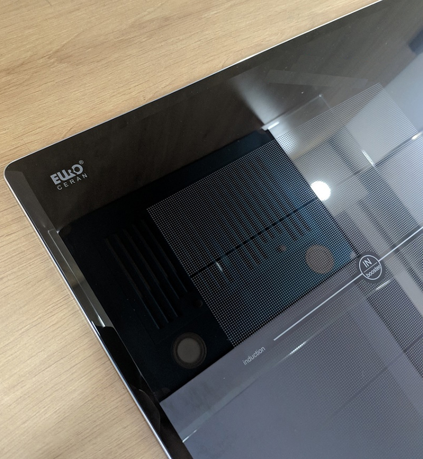 Đây là mặt kính chuyên dụng dành cho bếp điện từ, là một loại kính có chất lượng cao, rất cứng, bền và có nhiều đặc điểm nổi trội như: khả năng chịu nhiệt, khả năng chống trầy xước và chống va đập .... Mặt kính gồm các thấu kính hội tụ, truyền nhiệt từ bếp lên đáy nồi theo phương thẳng đứng, không thất thoát nhiệt ra môi trường. Mặt kính màu xám liền nguyên khối, an toàn, thẩm mỹ và tiện trong việc vệ sinh, lau chùi.