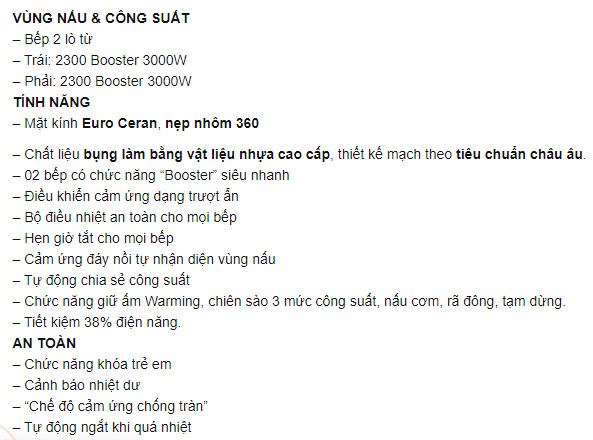 – 02 bếp có chức năng “Booster” siêu nhanh