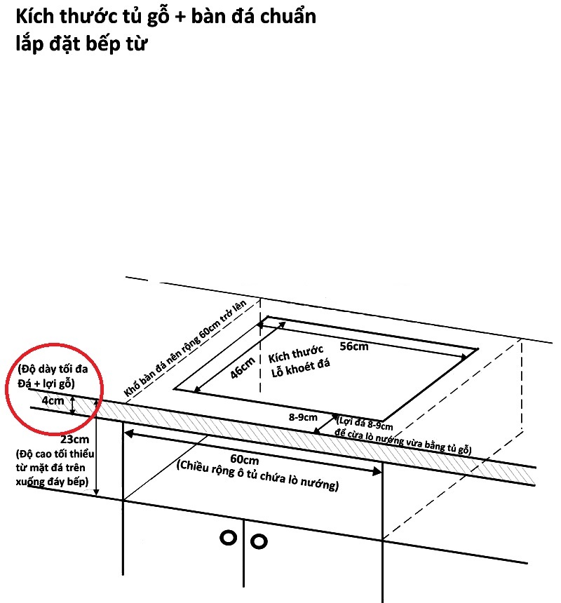 Kích thước bếp: 600 x 230 x 515 mm ( dài x cao x rộng)