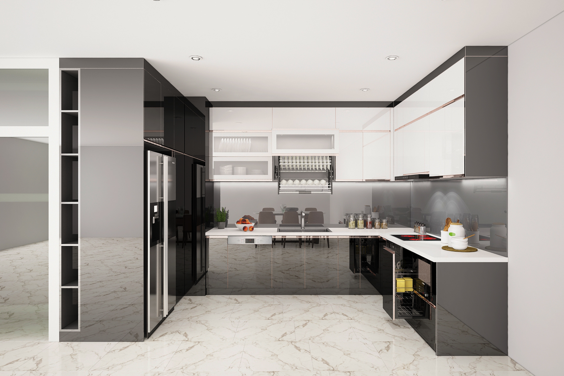 Bộ tủ bếp Mr. Huy_Gamuda_Tủ bếp inox nhập khẩu, cánh kính