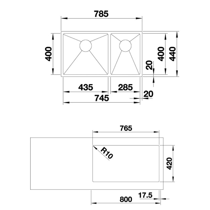 THÔNG SỐ KỸ THUẬT CỦA CHẬU RỬA BÁT ÂM BLANCO QUATRUS R15 435/285-IU