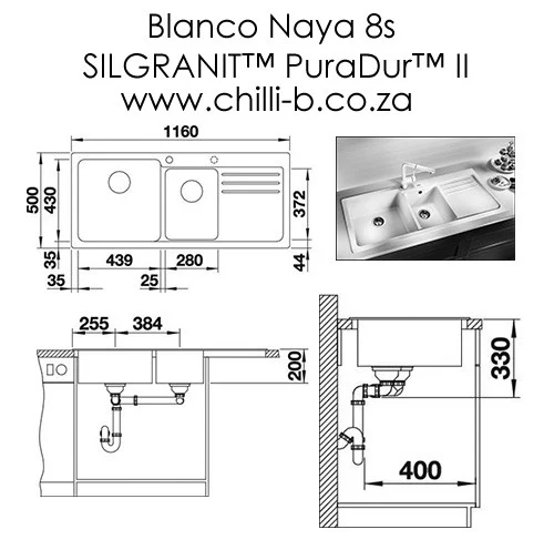 KÍCH THƯỚC CỦA CHẬU RỬA BÁT BLANCO NAYA 8S ROCK GREY