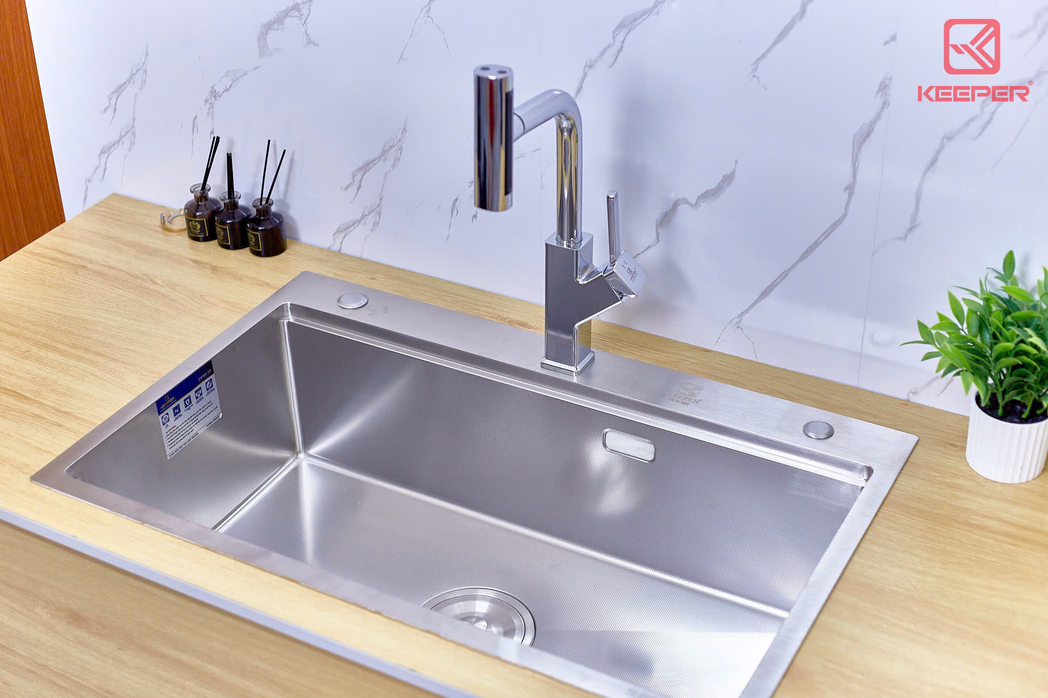 Sản phẩm chậu rửa bát hay còn gọi là bồn rửa chén 1 hố thương hiệu KEEPER được thiết kế với sự tinh tế và hiện đại, phù hợp với mọi phong cách nội thất và không gian bếp. Chất liệu cao cấp và độ hoàn thiện tỉ mỉ, đảm bảo tính thẩm mỹ và độ bền bỉ, đồng thời giúp tiết kiệm thời gian và công sức trong quá trình nội trợ hàng ngày. Không chỉ tập trung vào chất lượng sản phẩm, KEEPER còn đặt sự hài lòng của khách hàng lên hàng đầu. Đội ngũ nhân viên chuyên nghiệp và tận tâm luôn sẵn sàng hỗ trợ khách hàng trong quá trình chọn lựa sản phẩm và cung cấp dịch vụ hậu mãi tốt nhất.