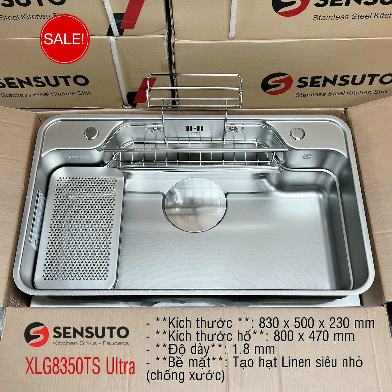 - **Full set tiện lợi**: Sản phẩm đi kèm đầy đủ phụ kiện giúp tiết kiệm thời gian và công sức trong việc lắp đặt và sử dụng. Chậu rửa bát cao cấp một hố Sensuto XLG8350TS Ultra 2025 với giá ưu đãi đang là lựa chọn lý tưởng cho không gian bếp hiện đại.