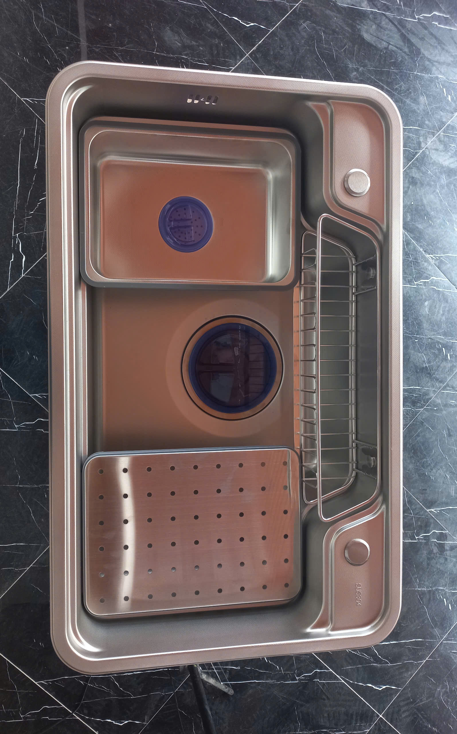 Bộ sản phẩm gồm: 1 chậu rửa + thớt + chậu nhỏ + Bộ siphon