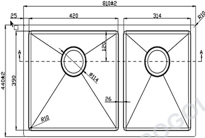 - Dòng sản phẩm được thiết kế 2 hố: Hố lớn có kích thước chiều ngang*chiều dài*chiều sâu là 42*39*22 ( cm ), hố nhỏ tương tự có kích thước 31,4*39*22 ( cm ) giúp người dùng có thể phân chia rõ ràng các mục đích sử dụng.