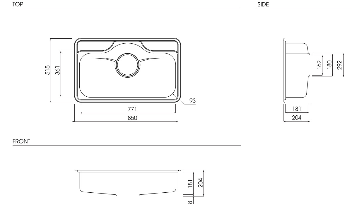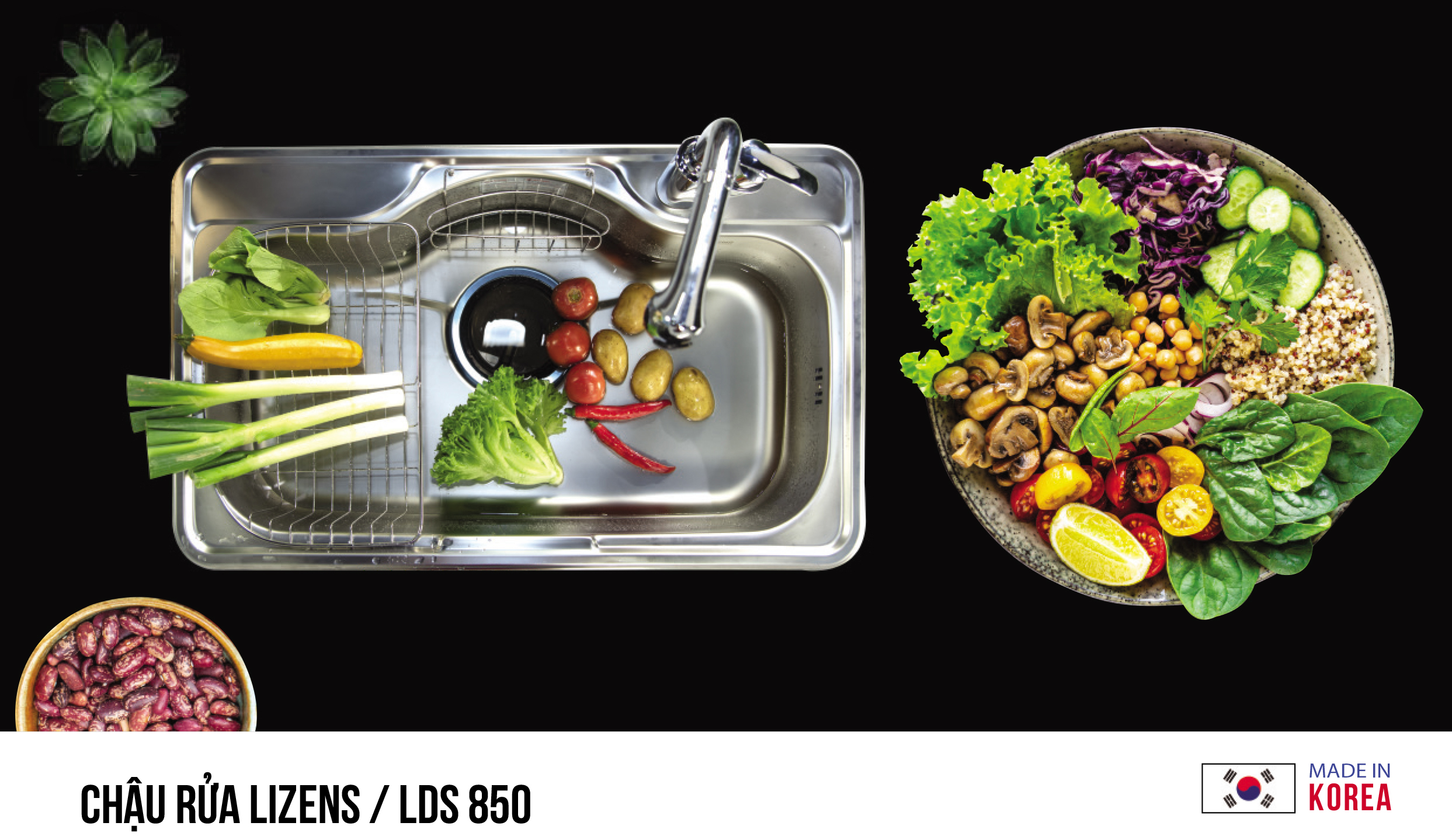Chậu rửa bát Hàn Quốc 1 hố LIZENS LDS-850 (85×51.5x20cm)