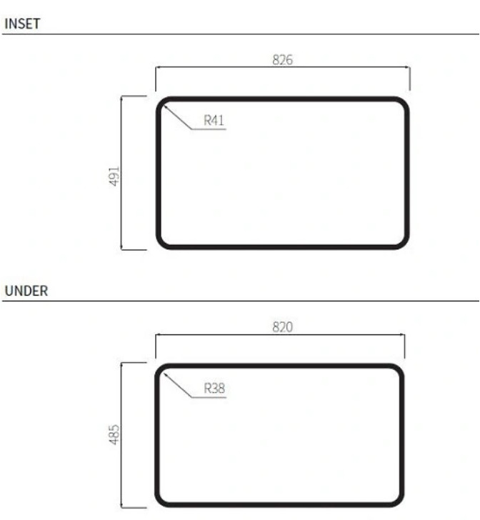 - Kích thước cắt đá lắp dương: 826 x 491 x R41mm