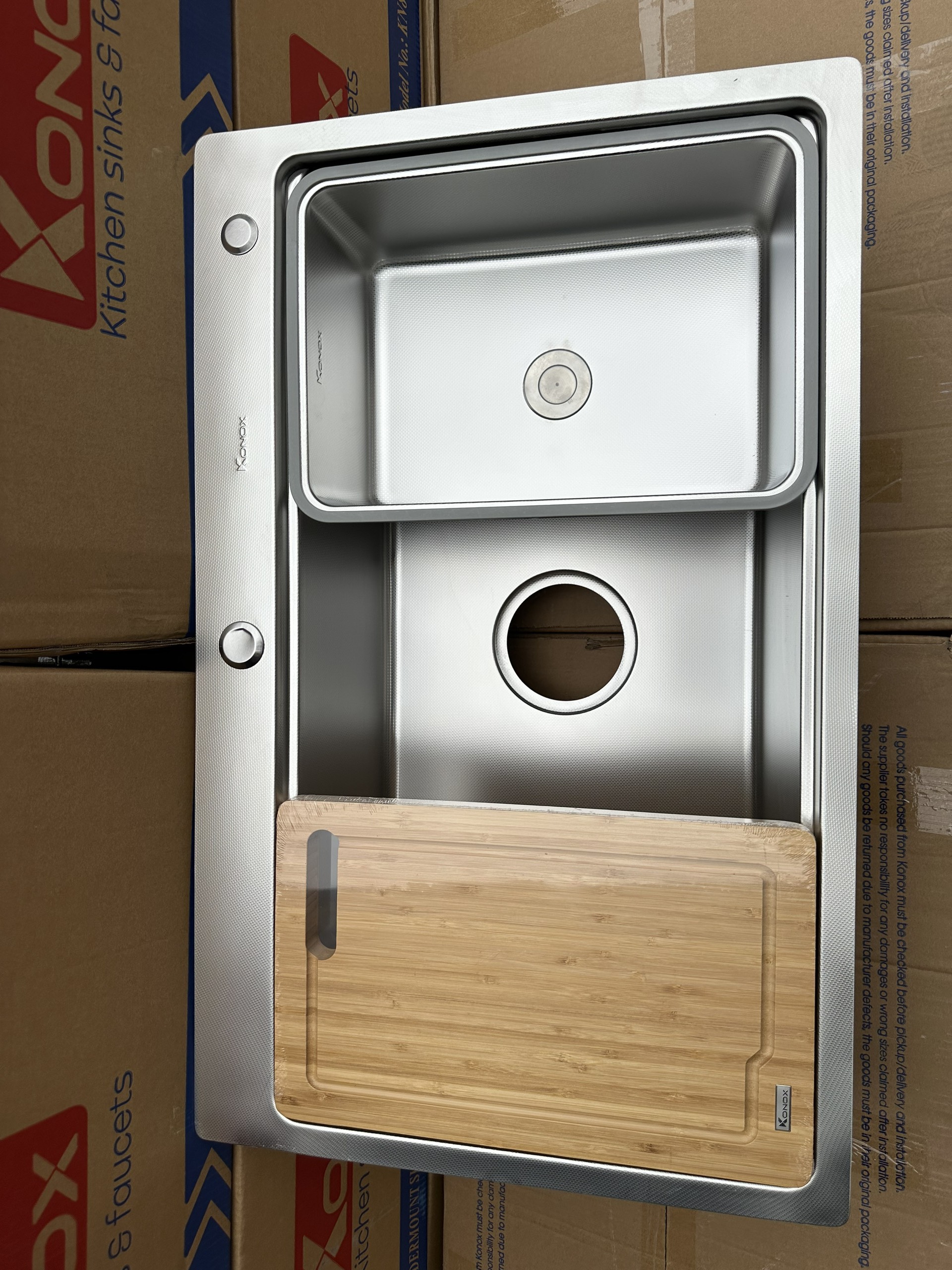 Konox trang bị thêm một chậu rửa nhỏ 400*280*140mm thiết kế theo kích thước bồn bếp để khách hàng trải nghiệm sơ chế đồ thuận lợi hơn khi nhu cầu rửa ít.