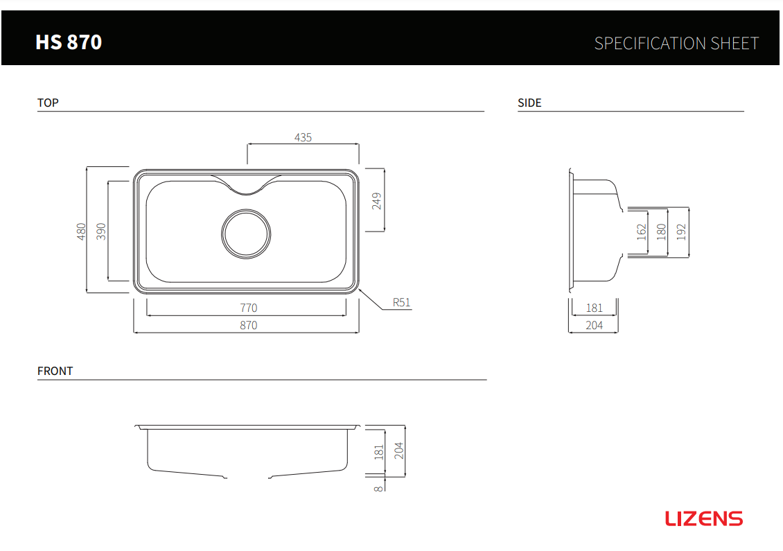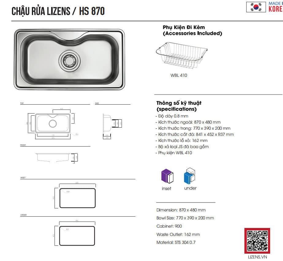 Chậu rửa bát 1 hố Hàn Quốc LIZENS HS 870