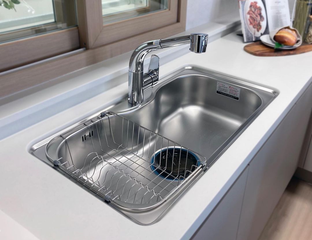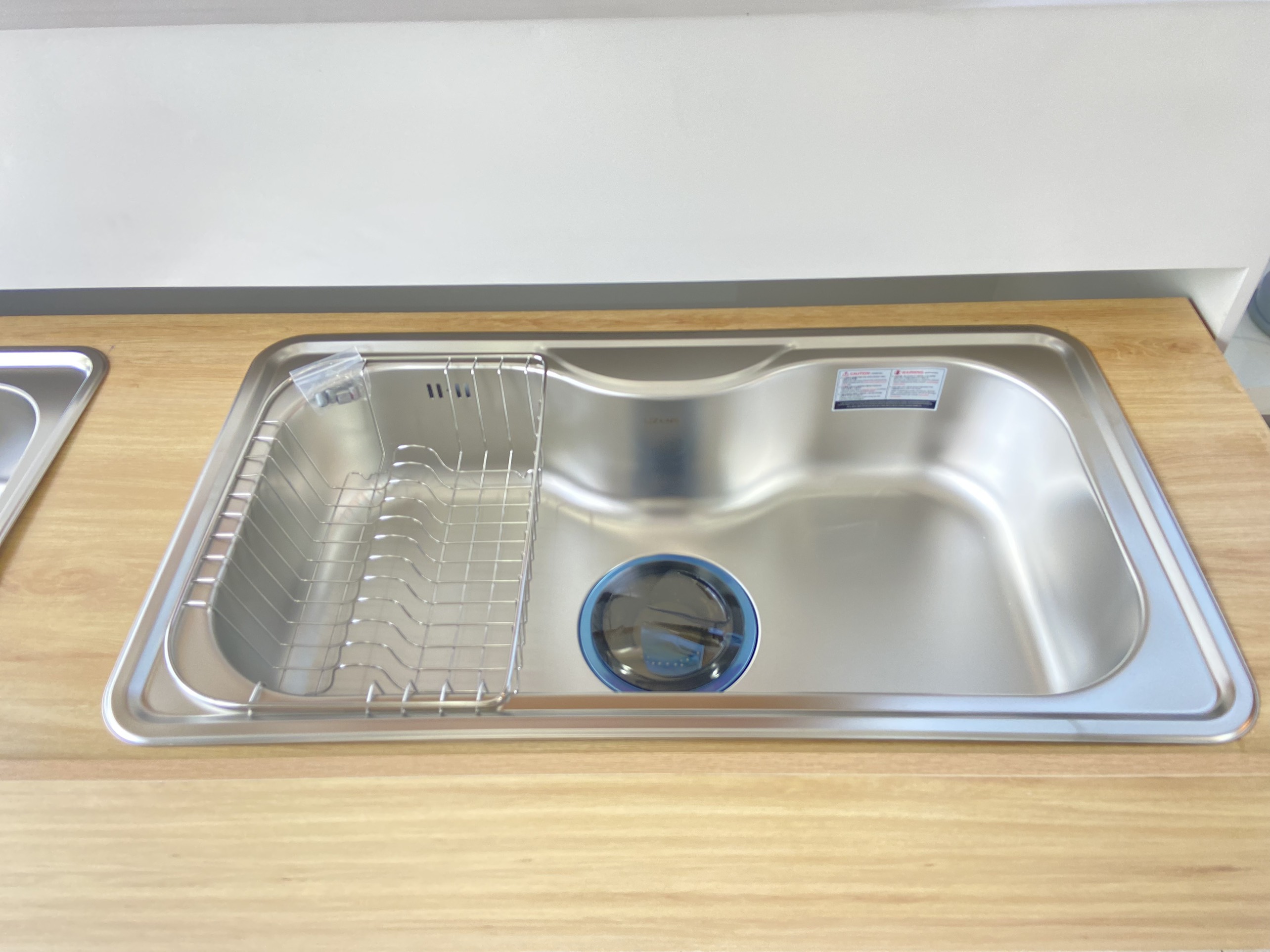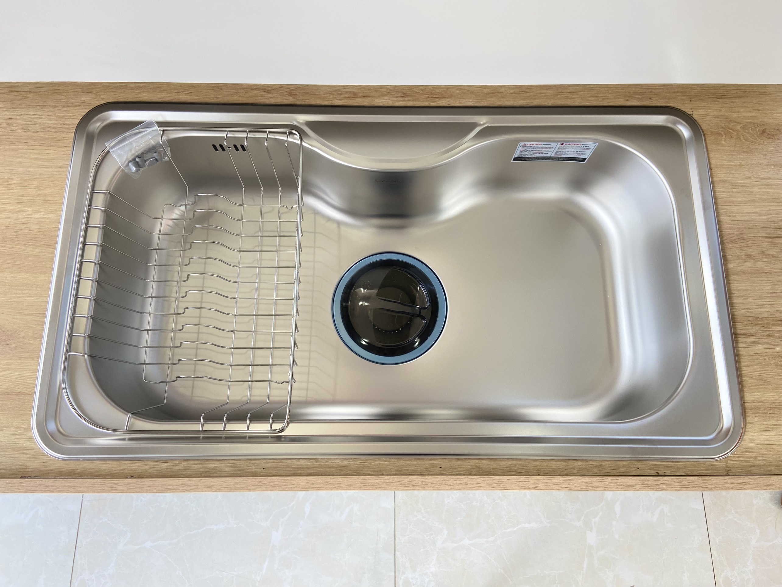 Bồn rửa có kích thước lớn, phụ kiện rổ đi kèm giúp dễ dàng thao tác.