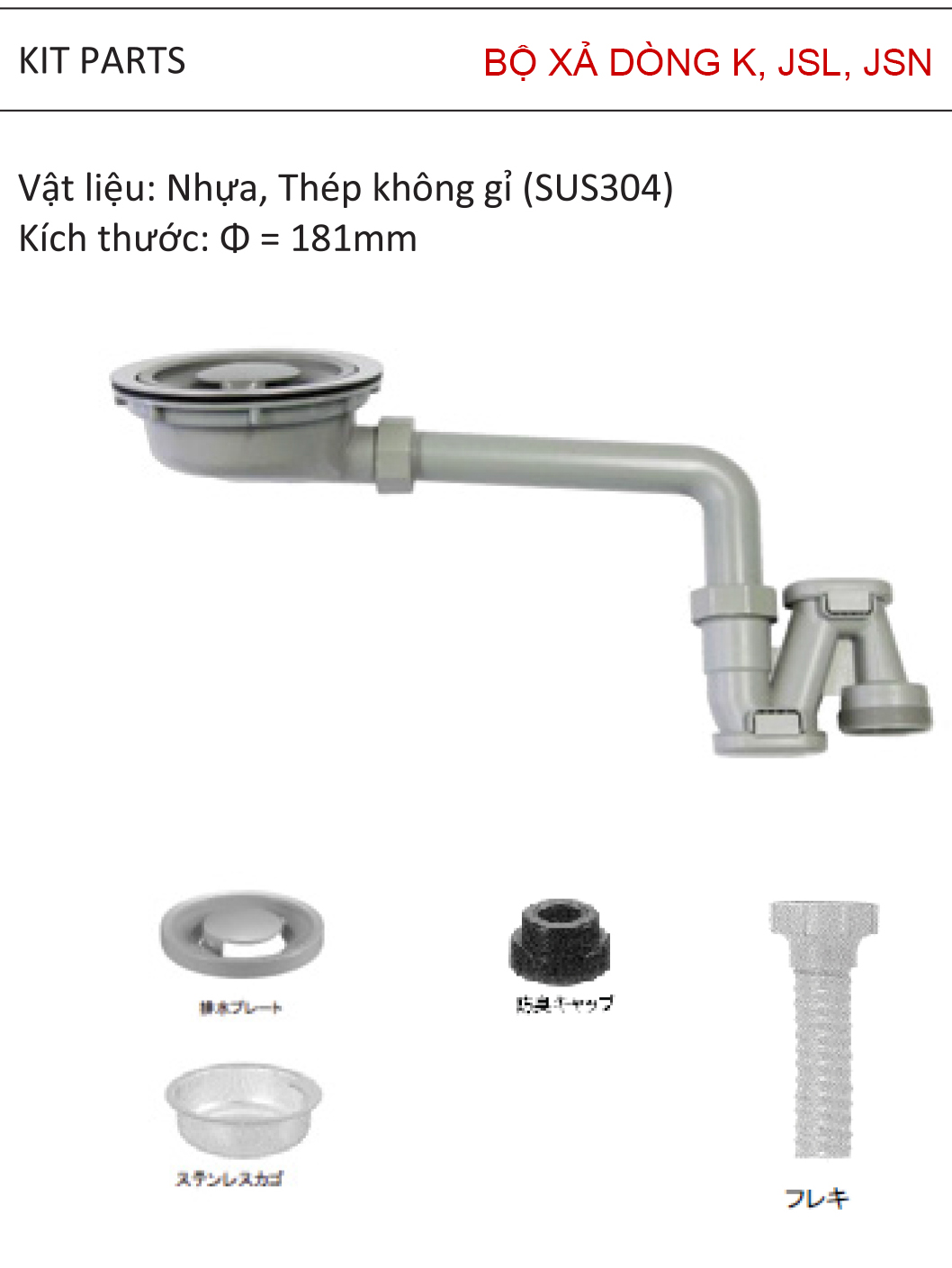 Thông số kỹ thuật Chậu rửa 1 hố Shigeru Nhật Bản LE JSN-K-2F FS