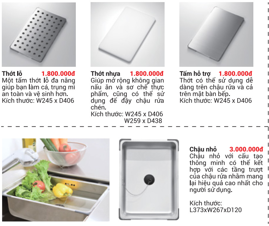 Công dụng: dùng để cắt như thớt thông thường hay làm tấm đậy mặt chậu,tăng diện tích thao tác bếp.