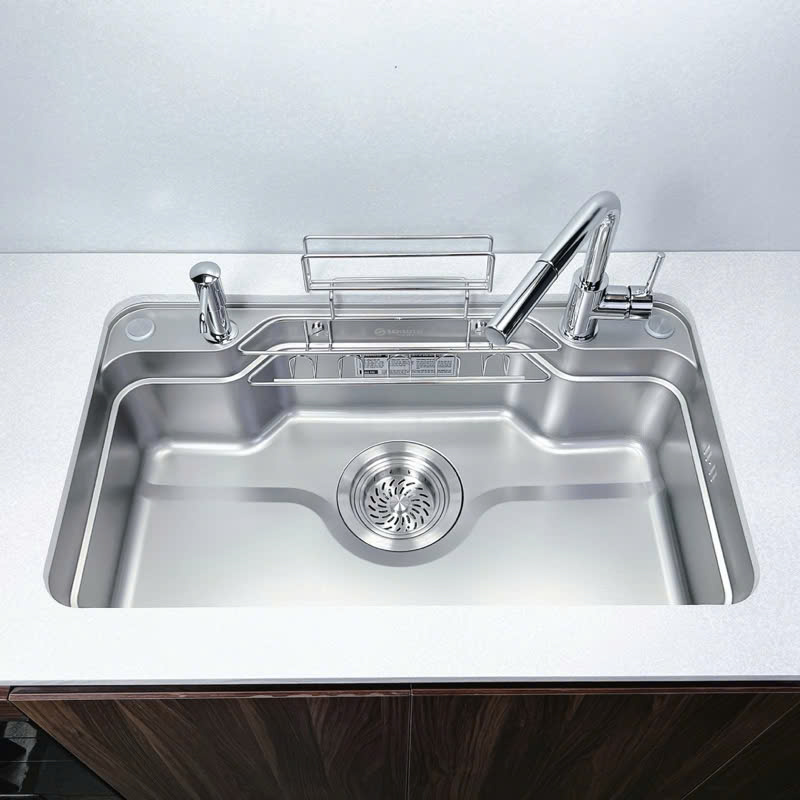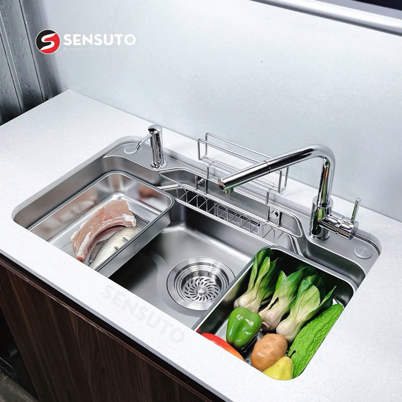 💎 Lòng chậu sâu, hố chậu lớn, được thiết kế gờ hạ bậc thông minh, cho phép tích hợp phụ kiện làm bếp như thớt, rổ, chậu mini,... giúp bạn tiết kiệm thời gian làm bếp hiệu quả;