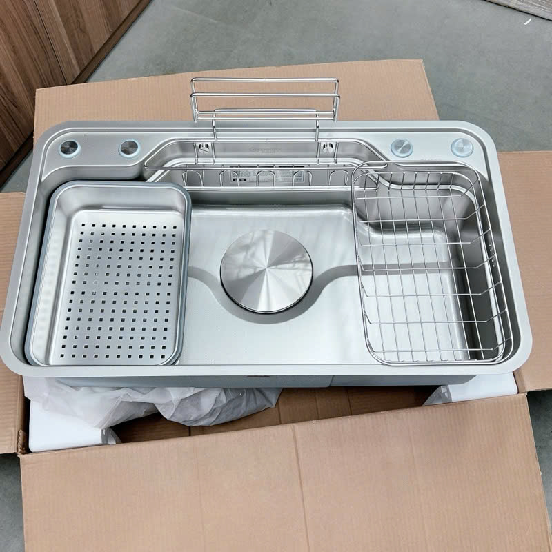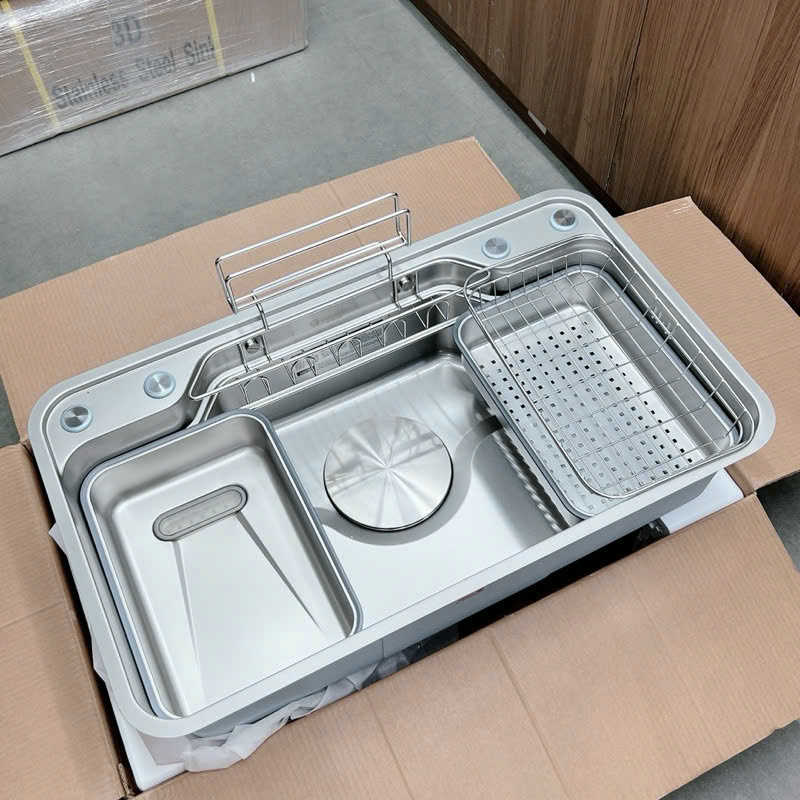 🔸 Chậu 82x45x23 cm 🔸Giỏ xà phòng và cài thớt 🔸 Rổ inox 🔸Chậu phụ 2 cái 🔸Bộ xả cao cấp , bầu xiphong 185 mm