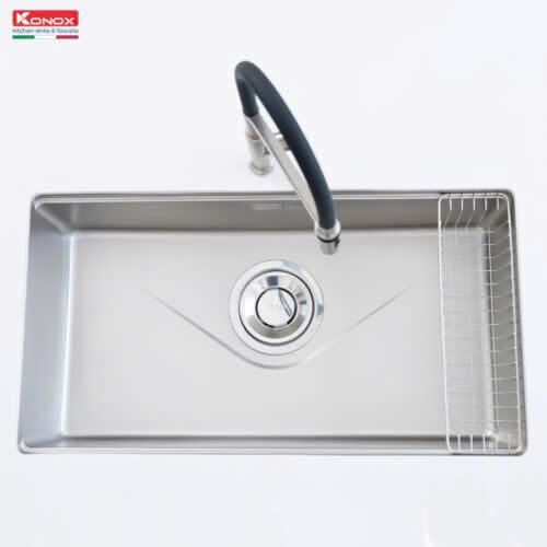 Với model Tari 8748SR, Konox ra mắt bề mặt dập tạo hạt Linen chống xước với phiên bản hạt siêu nhỏ giúp tối ưu khả năng chống xước vượt bậc, giữ vững độ bền và thẩm mỹ theo thời gian. Sản phẩm tích hợp bộ phụ kiện tiện lợi, dễ sử dụng, đáp ứng nhu cầu sử dụng bồn rửa cơ bản.