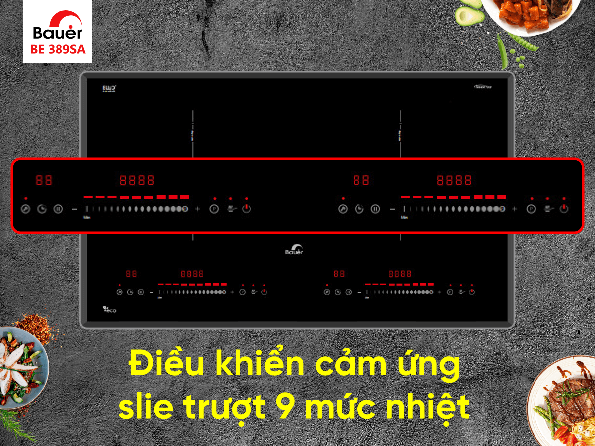 – Bảng điều khiển cảm ứng dạng trượt Slider Control, có đến 9 mức chỉnh công suất, dễ dàng sử dụng chỉ với 1 thao tác trượt tay đơn giản. Các kí hiệu và chữ cái đều được in hiển thị vô cùng sắc nét và chi tiết. Mỗi vùng nấu sẽ có 1 bảng slide điều chỉnh riêng.