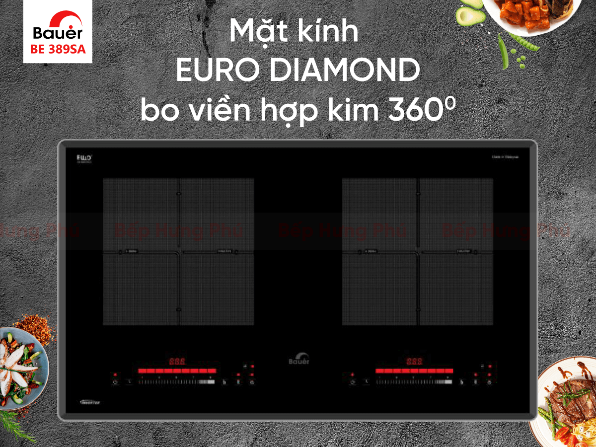 – Bếp từ BE 389SA sở hữu mặt kính Euro Diamond có mặt kính vát cạnh, sơn nghệ thuật sang trọng. Mặt kính được làm từ chất liệu gốm thủy tinh có khả năng chịu nhiệt lên đến 1000°C, kháng sốc 750°C. Bề mặt kính chịu nóng lạnh cũng như sự thay đổi đột ngột của nhiệt độ. Độ giãn nở vì nhiệt thấp nên bếp hoạt động rất hiệu quả và cách nhiệt. Mặt bếp tản nhiệt nhanh và được cách điện an toàn với các linh kiện điện tử bên trong thân. Bạn có thể yên tâm sử dụng mà không lo bị bỏng hay điện giật.
