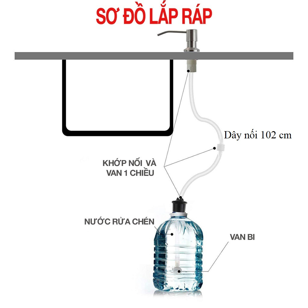 Chi tiết Sản phẩm: Bộ vòi xịt nước rửa chén Inox 304 gắn bồn rửa chén dây nối dài 102cm tới chai nước rửa chén lớn