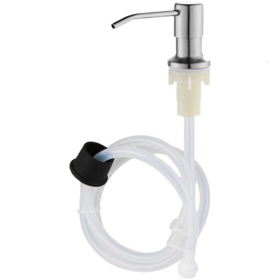 - Thiết kế nút nhấn Inox 304 bền bỉ, lò xo nhấn đàn hồi tốt, dây nối dài 102cm thoải mái nối xuống phía dưới nơi đặt bình đựng nước rửa chén