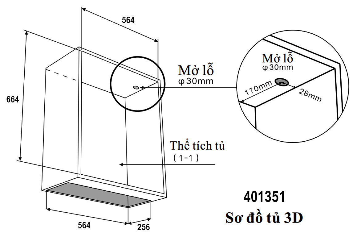 + Chiều sâu khoang tủ: ≥ 300 mm