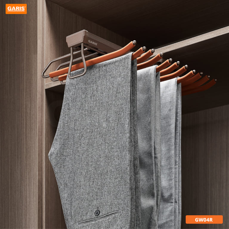 Giá treo quần âu đơn màu đỏ Carnelian | Garis GW38R | ray âm giảm chấn | lắp trần tủ | thiết kế sang trọng cho tủ áo tiện nghi