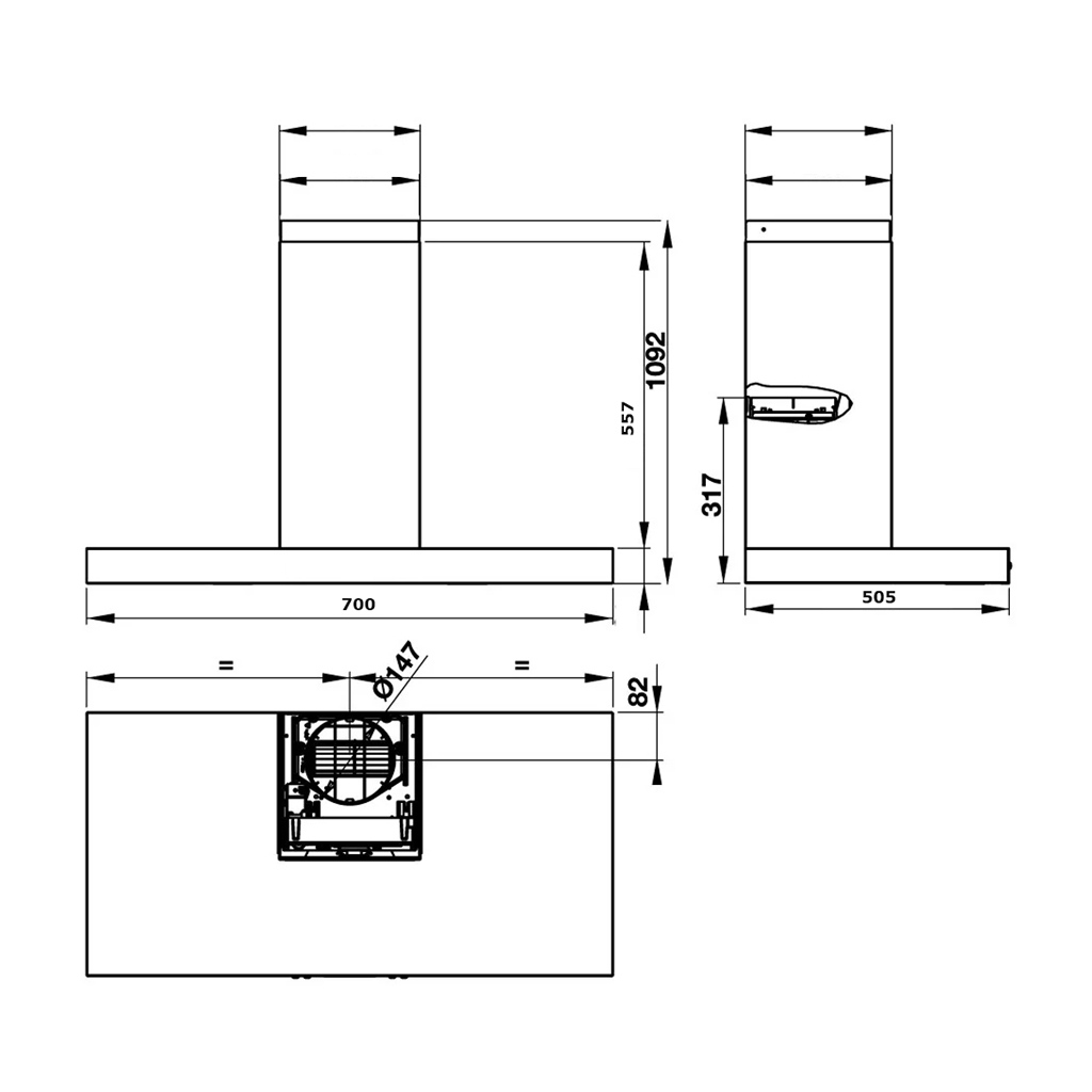 – Thiết kế dạng chữ T gắn tường rộng 700mm