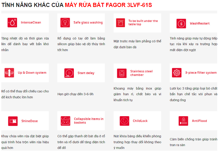 TÍNH NĂNG KHÁC CỦA MÁY RỬA BÁT FAGOR 3LVF-61S