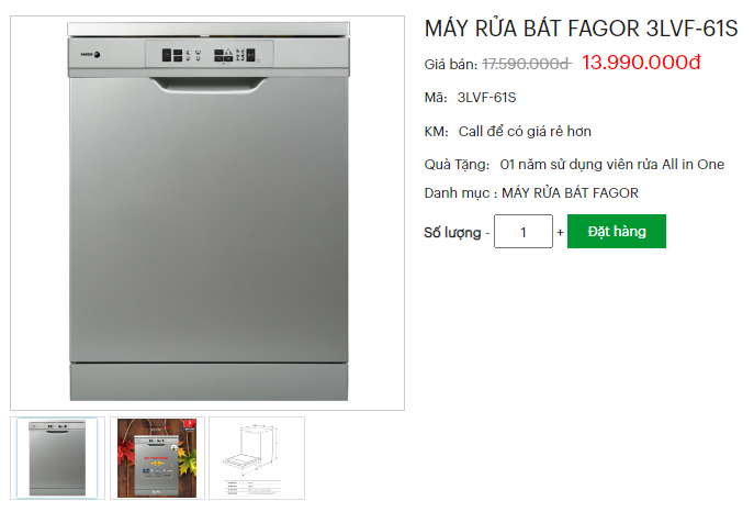 MÁY RỬA BÁT FAGOR 3LVF-61S ĐỘC LẬP MÀU INOX