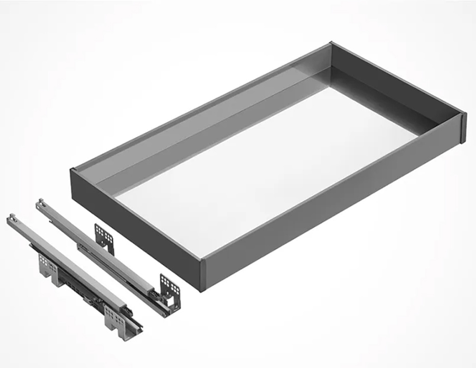 Về chất liệu được làm từ hợp kim nhôm hàng không cao cấp, bề mặt được phủ Nano màu xám bằng công nghệ tiên tiến cho ra bộ sản phẩm bền đẹp và sang trọng. Sản phẩm được tích hợp ray âm giảm chấn chất lượng cao đạt tiêu chuẩn GS50.000 của Châu Âu, đem lại trải nghiệm sử dụng nhẹ nhàng, êm ái mỗi khi kéo đẩy.