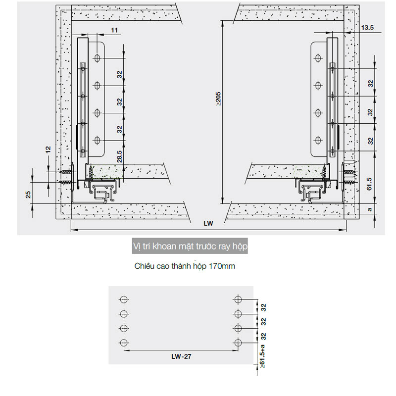 - Trọn bộ gồm : 1 cặp thanh ray trượt mở toàn phần, 1 cặp thành hộp 120mm, 2 bas mặt trước, 1 cặp bas ray trượt. 2 bas mặt sau, 2 nắp che logo Hafele