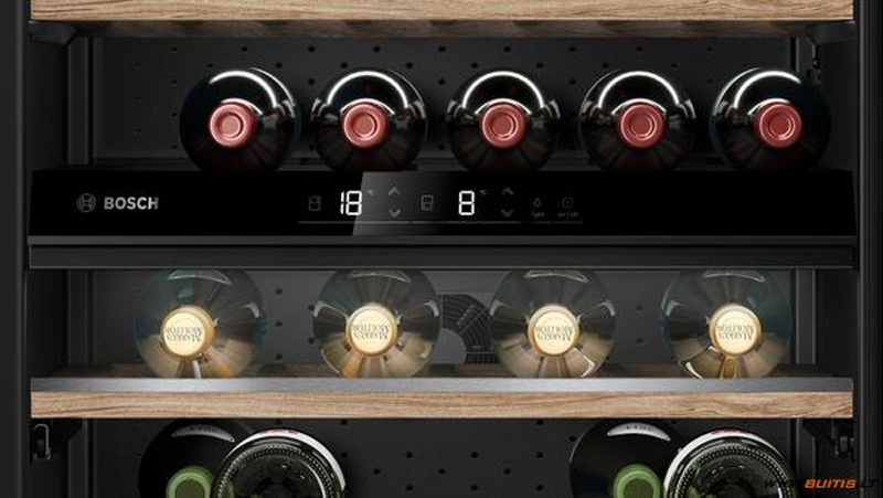 Tủ ướp rượu vang KUW21AHG0 mới của Bosch cung cấp hai các vùng nhiệt độ có thể điều chỉnh riêng biệt (đỏ và trắng )