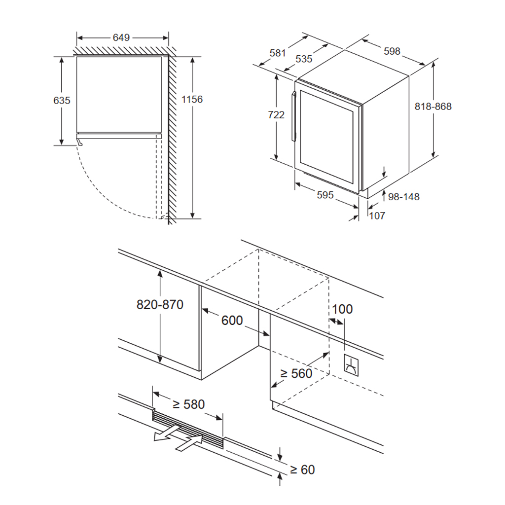 - Kích thước KUW21AHG0: C818 x R598 x S581 mm